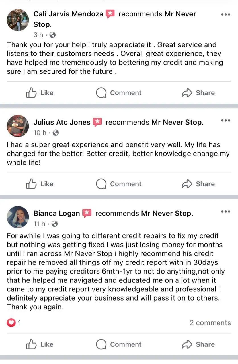 Hey Winners, my name is Jay Rowland proud owner of Mr Never Stop 🛑 I’ve been at this credit Repair game for 7 years strong now, trying to educate my clients and family members the importance of credit.